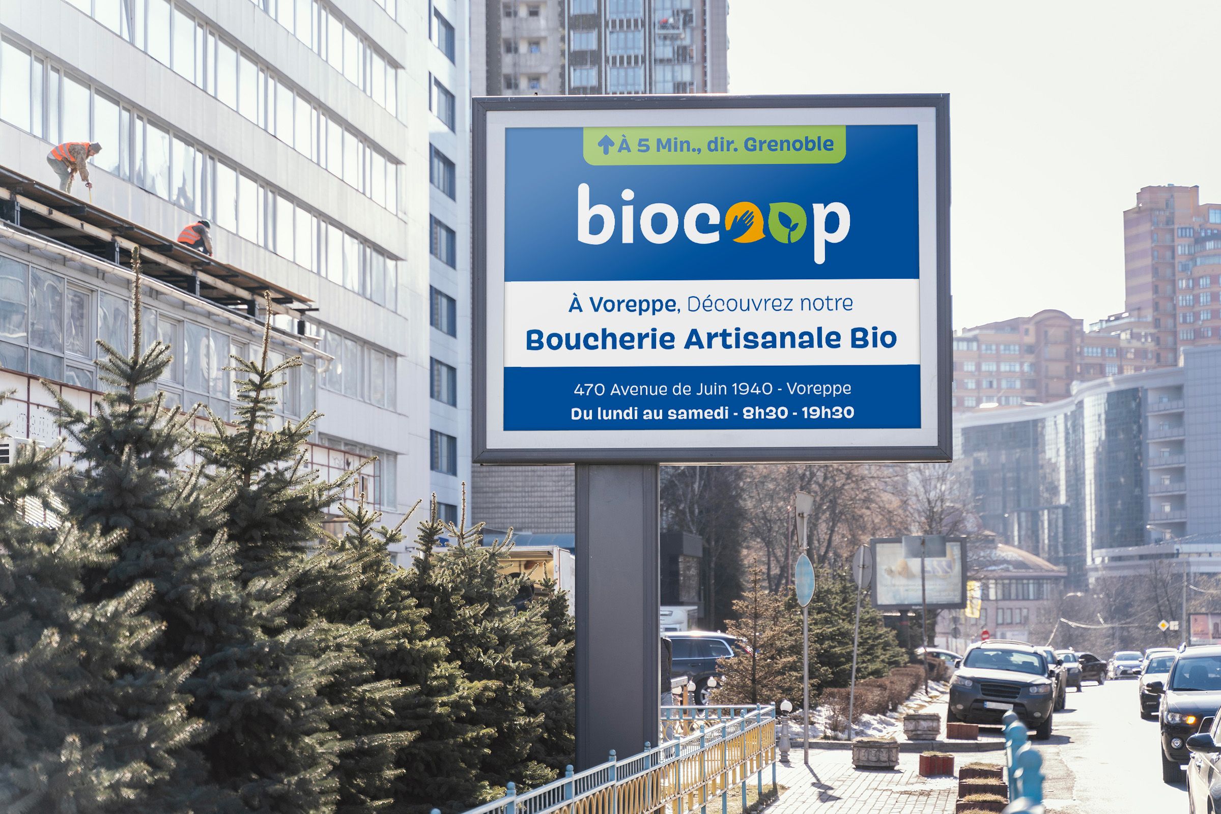 Notre travail pour Biocoop Voreppe continue au fil des années, depuis la création de la devanture pour leur ouverture, l’habillage intérieur signalétique (mural et de sol), le totem et les 4X3, les flyers, le site Internet jusqu’au véhicule et aux banderoles. Merci à eux pour leur confiance aux fils des saisons.