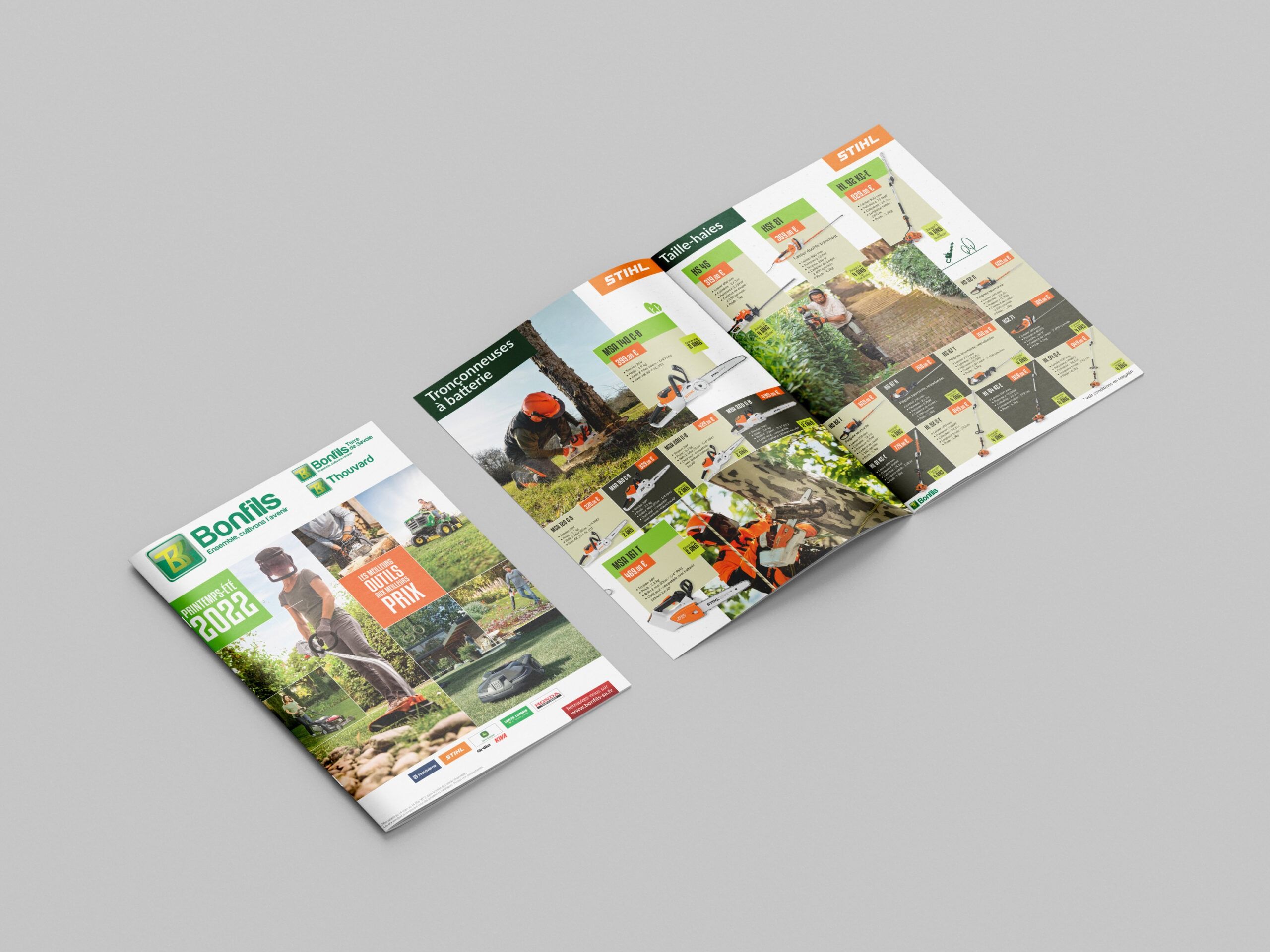 Nous travaillons depuis maintenant 6 ans à la réalisation graphique des catalogues Printemps/Été et Automne/Hiver pour présenter et dynamiser la gamme de produits revendue par Bonfils. Le but est de mettre en avant le groupe tout en présentant les marques internationales du catalogue. Nous accompagnons nos prestations d’une série de visuels évènementiels pour des dépliants, flyers et banderoles.
