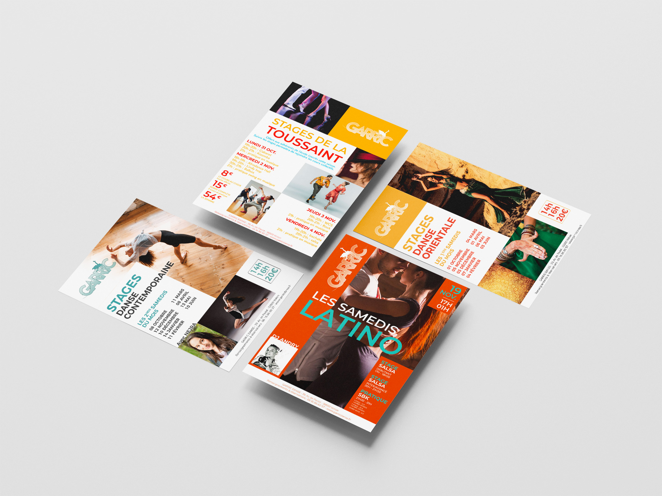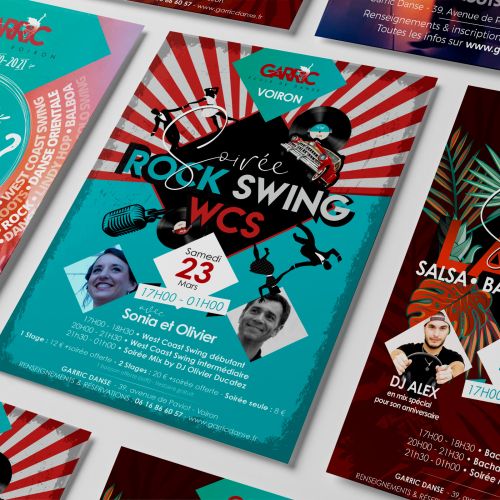 Logotype, flyers, affiches, enseigne, décoration intérieure, site Internet, publicité sur véhicule, banderoles, panneaux, stickers, t-shirts, bons cadeaux, cartes de vœux, séance photo