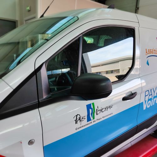 On Air intervient régulièrement auprès du Pays Voironnais pour décorer les véhicules des services techniques (que ce soit les services eau, assainissement, déchets, patrimoine) ou pour décorer les véhicules du pôle emploi ou des résidences sénior. Nous créons aussi panneaux de chantier et supports adhésifs pour totems.