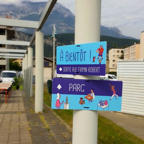 Le service communication de la ville de Pont-de-Claix nous confie régulièrement la réalisation d’enseignes et de signalétiques. En 2023, Nous avons réalisé les signalétiques éducatives et sportives du Parc Borel.